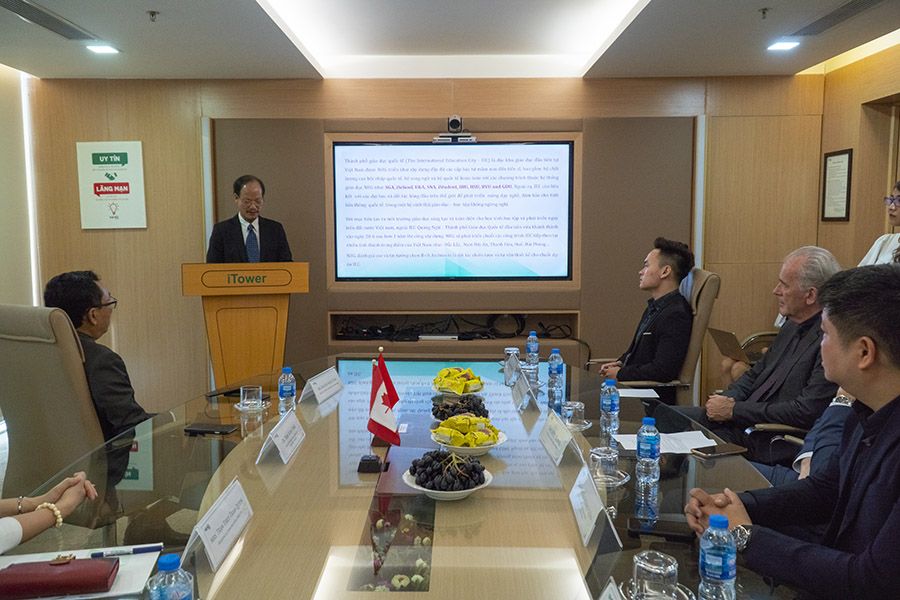 Lễ ký kết thoả thuận đối tác chiến lược và tư vấn thiết kế Thành phố giáo dục quốc tế - IEC đã diễn ra dưới sự chứng kiến của lãnh đạo cấp cao hai bên và sự hiện diện đặc biệt của ông Kyle Nunas, Tổng lãnh sự quán Canada tại TP.HCM và ông Trương Sĩ Lê Minh, Tham tán Thương mại Canada.